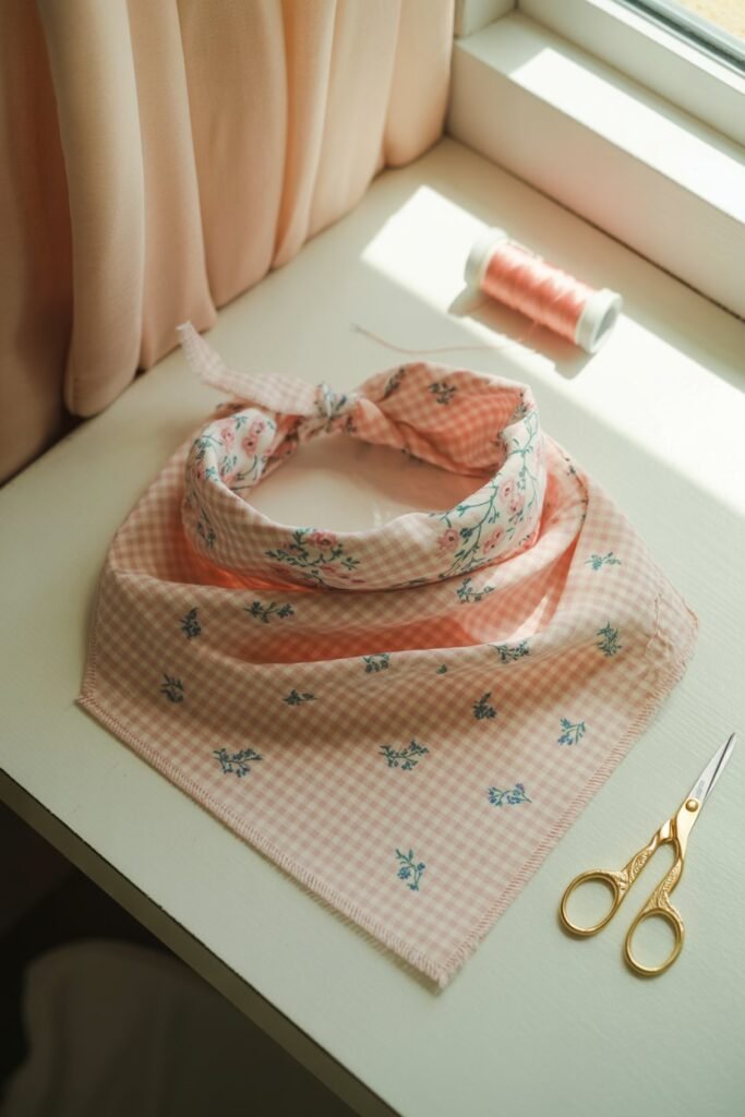 Cut the fabric into a large square, fold it diagonally, and sew or glue the edges. Add your dog’s name with embroidery or an iron-on patch for that boutique feel.