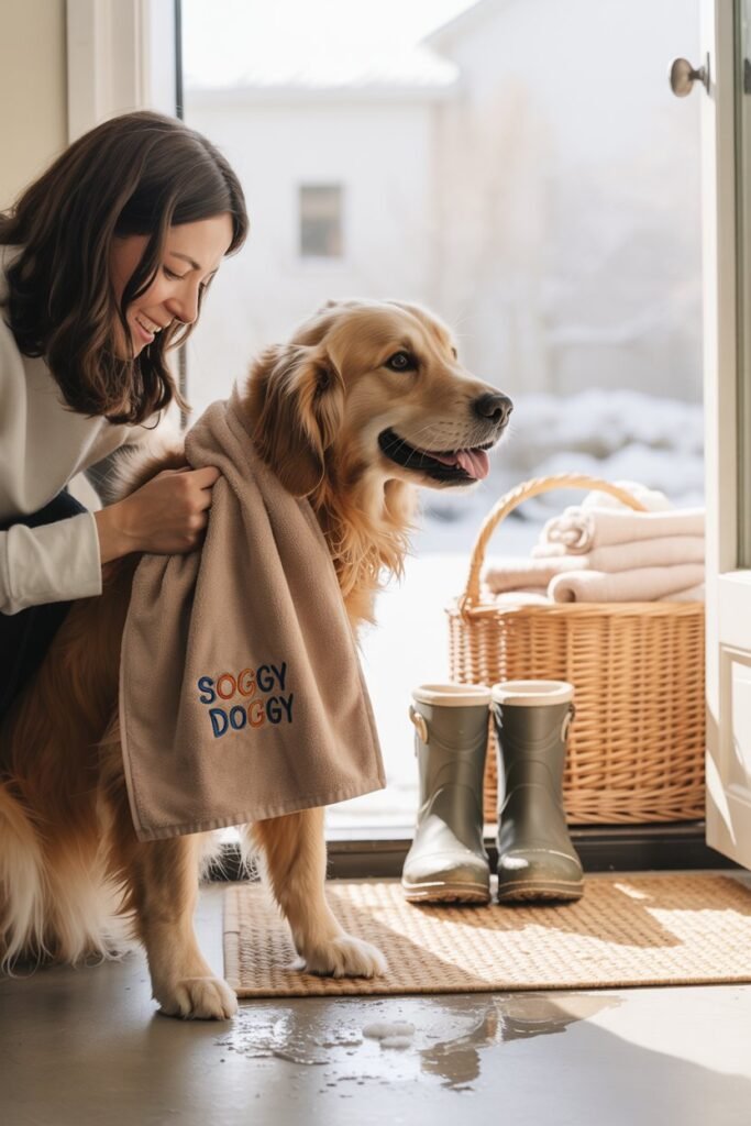 After walks, I keep one by the door to wipe her paws and legs before she tracks wet prints across the floor.
