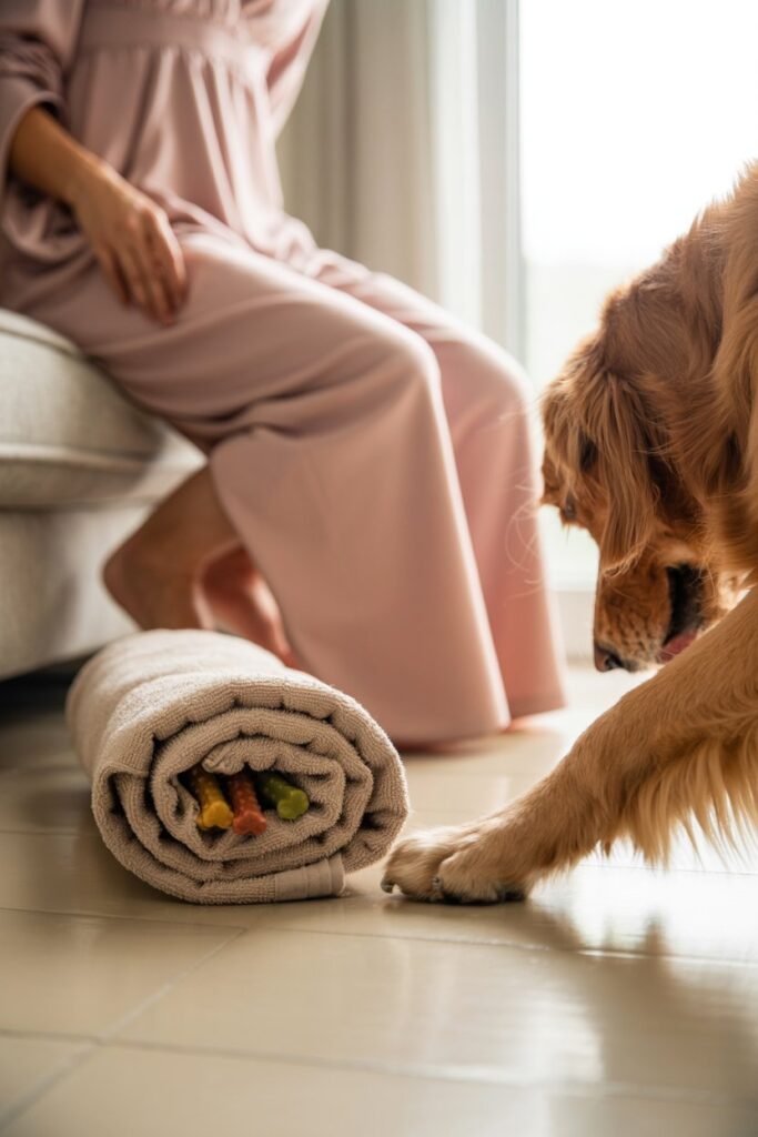 This game is a simple way to burn energy indoors and give your dog a real sense of accomplishment.