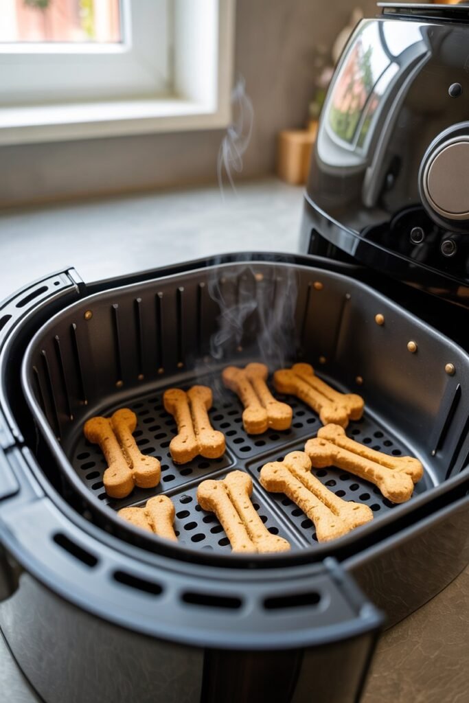 I place the treats in a single layer and air fry for 8–10 minutes, flipping halfway through. For firmer treats, I add 2–3 extra minutes.
