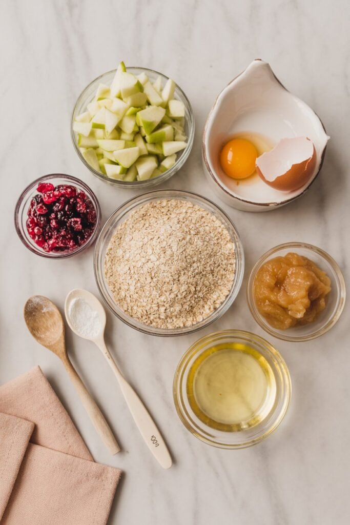 In a bowl, I combine the grated apple, cranberries, egg, applesauce, and coconut oil. I stir gently until fully blended.