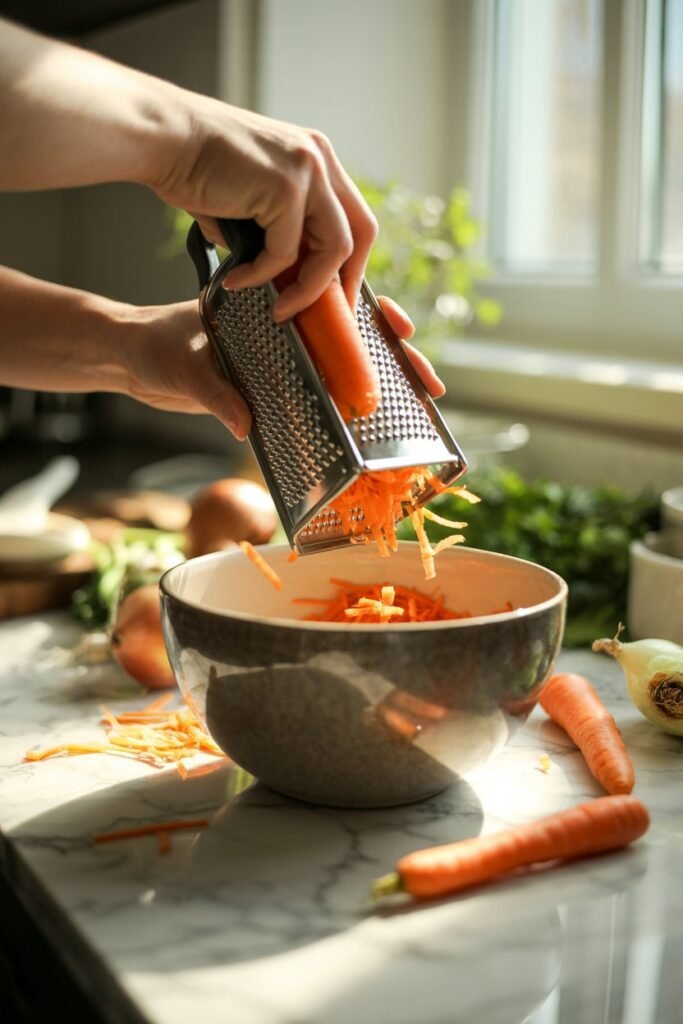 Provides protein, structure, and chew density - 1 cup finely grated carrots
