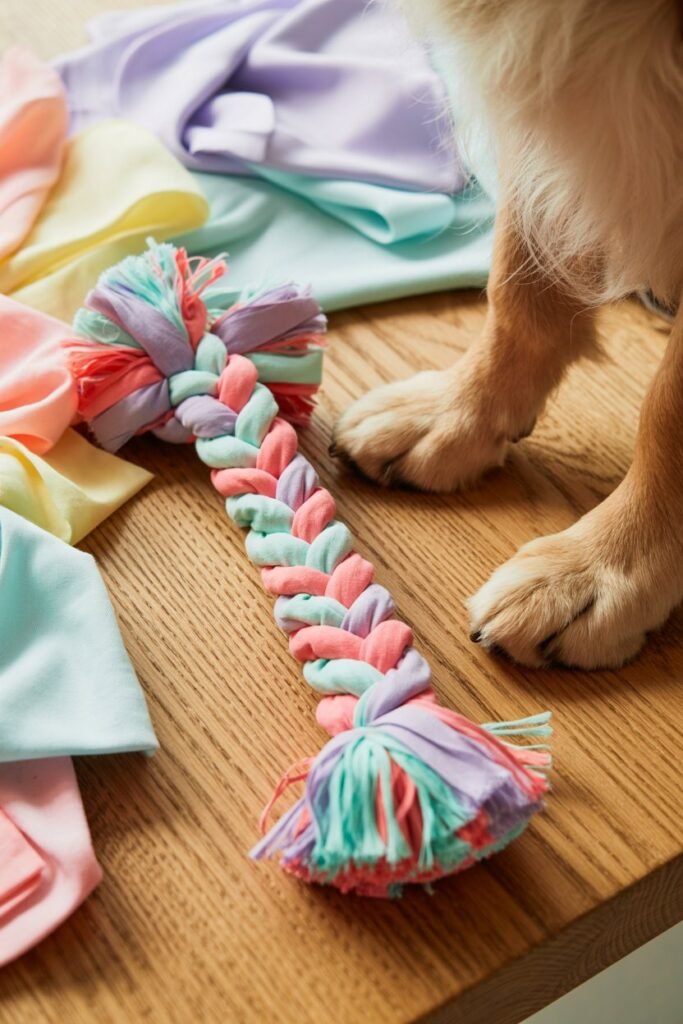 SEO Keywords: DIY dog toy, homemade dog rope toy, no-sew dog toy, eco-friendly dog project, upcycled dog toy