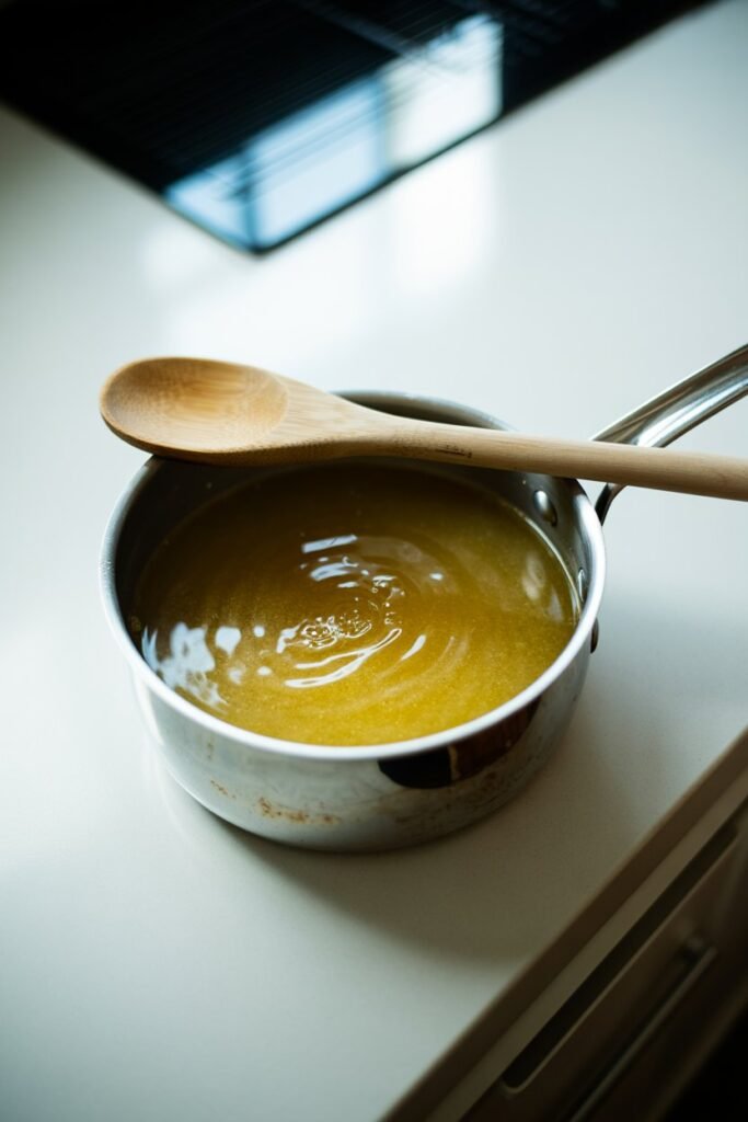 You’ll notice the surface of the liquid turning slightly grainy or firm — that’s perfect.