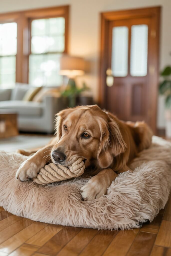 A tired dog is not a chaotic dog. A calm walk, gentle play, or mental enrichment earlier in the day makes a noticeable difference.