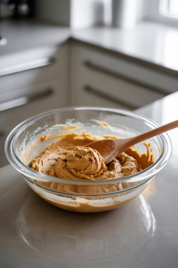 Pro Tip: “Use a fork or silicone spatula to break down thick peanut butter easily—this prevents lumps in your dough.”
